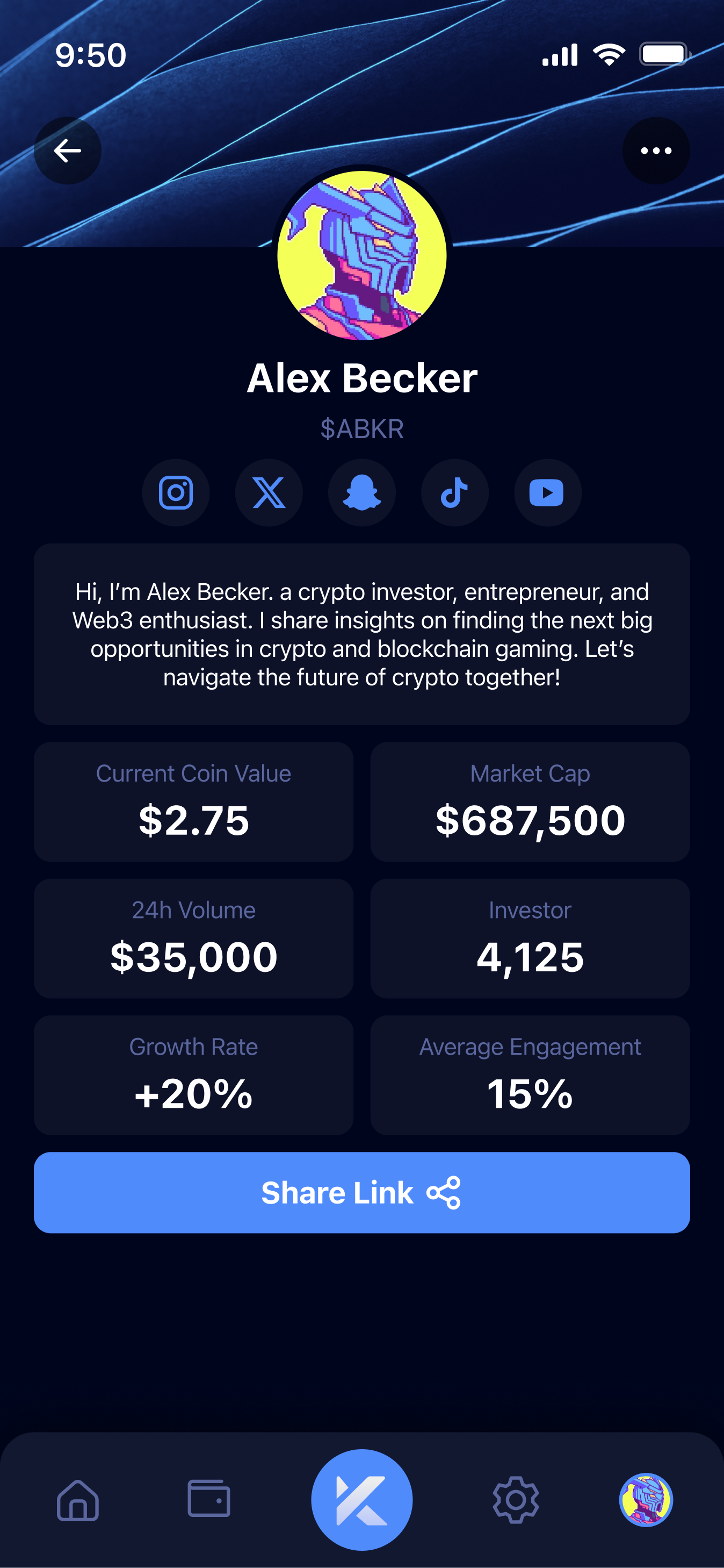 Each Key Opinion Leader (KOL) on the platform has a unique token you can invest in, giving you a direct stake in their influence and growth.