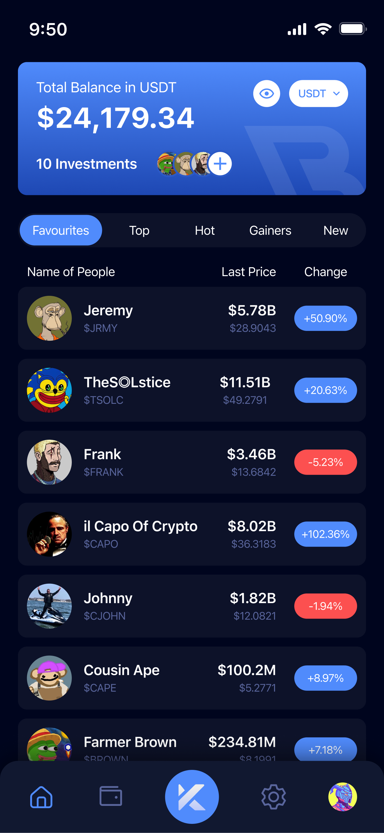 Coin values dynamically adjust based on the popularity and social influence of the individual, giving users exciting and timely investment opportunities.